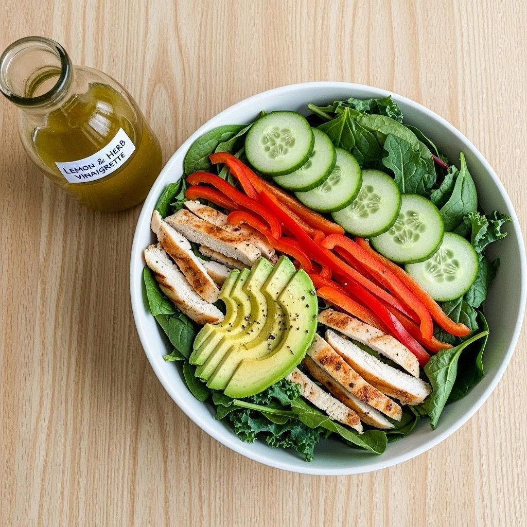 How to order: Start with a base of leafy greens (lettuce, spinach). Add non-starchy vegetables like cucumber, bell peppers, and carrots (in moderation). Include a plain grilled protein (chicken, steak, fish - verify it's cooked plain with no marinade/rub). Add avocado if available.
